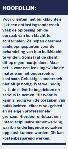 Buikklachten kunnen ontstaan in het gehele verteringstraject. Er kan immers veel verkeerd gaan ‘van mond tot kont’ en cliënten gaan op zoek naar de oorzaak. Waar ontlastingsonderzoeken aanknopingspunten kunnen zijn voor de behandeling, zijn ze niet altijd nodig. Een belangrijk deel van de oplossing zit ‘m vaak in eenvoudige leefstijlaspecten die samenhangen met het begin van het maag-darmkanaal.